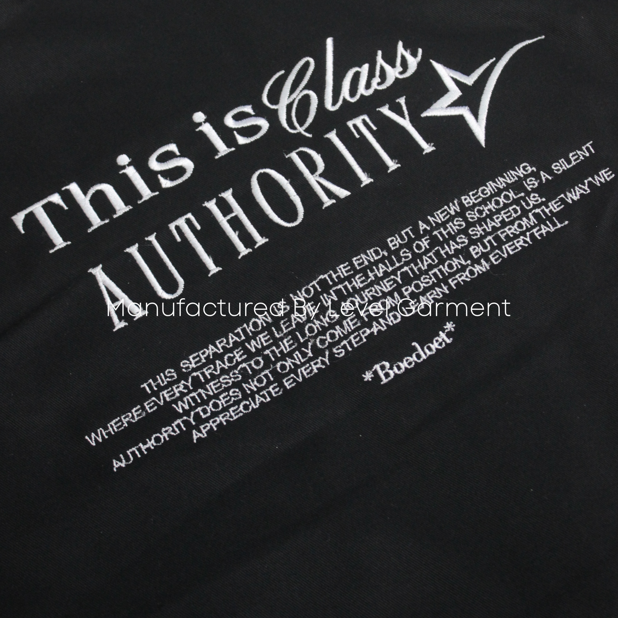 Di bordir menggunakan mesin Tajima Japan sehingga menghasilkan bordiran yang rapih dan tebal. Bordir dengan mesin otomatis yang canggih memakan waktu yang singkat sehingga dapat membantu proses produksi menjadi lebih efektif.